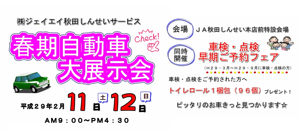 【2016年9月】ジェイエイ秋田しんせいサービスの春期自動車展示会で愛車を見つけよう!